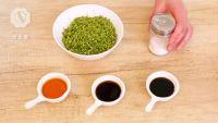 7.切碎的香椿里倒入生抽、醋、香油和盐搅拌均匀。