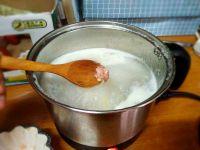 9.盖上锅盖,煮至皮蛋瘦肉粥逐渐粘稠。