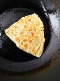 10.锅内刷油,把饼胚按的均匀密实更加薄一些