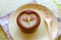 19.盛入羊羹杯中(不要满杯),摆上樱花,送入冰箱;