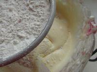 6.盐加到面粉里,分三次筛到蛋糊中。