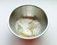 1.饼皮原料除橄榄油以外,倒入盆中,用筷子搅拌成松散状态,即可加入橄榄油。