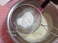 17.在筛入玉米淀粉,用打蛋器搅拌均匀。乳酪馅可以过一下筛,那就更细腻了。