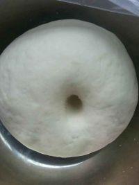 4.盖上保鲜膜发酵至两倍大,用手指戳下去洞不缩不塌就可以了