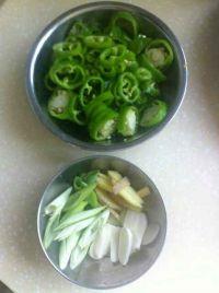 3.把尖辣椒切圈,葱姜蒜随意切。