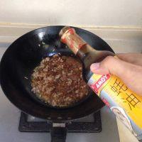 4.加入肉馅煸炒变色,加入肉馅汁,蚝油翻炒均匀,然后再加入高鲜,糖继续煸炒出香味