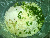 1.用料:糯玉米550克,全麦粉2大勺,盐1/4小勺,油1小勺,葱花适量