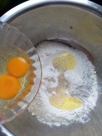 1.将面粉中加入酵母,鸡蛋,白糖,水