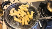 7.加热油锅,高温复炸一次,捞出沥油待用