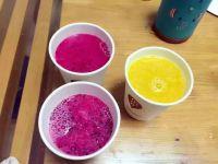 1.先将准备好的柠檬,火龙果洗干净,然后用榨汁机榨汁放入不同杯子待用