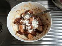 3.放入淀粉,量稍多一点,有利于封住肉汁,再抓匀。