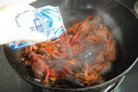 10. 倒入泡好的干辣椒段,倒入酱油蚝油胡椒粉翻炒2分钟