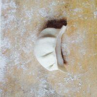 10.饧过的面团分成小剂子,小剂子按扁后擀成薄皮。