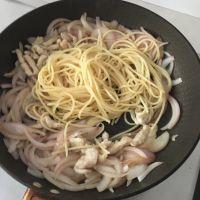 9.放入黑胡椒汁,1.5茶匙盐,适量水