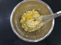 3.然后加入过筛的低筋面粉搅拌均匀,拿开停止加热。