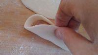 4.如图,取一个面皮,用抹子加入适量肉馅。