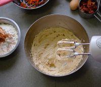 5.分3次加入鸡蛋,每次加入鸡蛋都打至完全混合状态再加下一个鸡蛋。