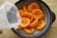 5.砂锅中倒入清水(水和杏子的比例为1: 2)