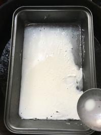 10.把粉浆搅拌匀后加2勺倒进盘子内,摇晃均匀。