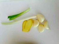 6.平底锅烧热后倒入油,放入葱姜蒜爆锅。