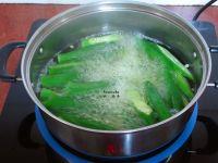 4.清水煮沸,放入秋葵,滚烫五成熟,捞出沥干水;PS:清水中放一点盐,秋葵颜色会漂亮很多。