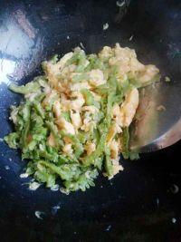 6.热锅倒油烧开,倒入鸡蛋液煎至成型后滑散,盛出