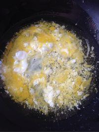 3.锅里倒入适量油,加入鸡蛋快速炒匀。