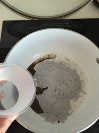 2.取仙人粄粉两包倒入锅中,用60ml凉开水调成无核稀糊状