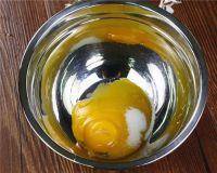 2.制作卡仕达酱馅:先将蛋黄加糖打散