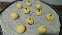 3.葡萄干和糯米粉倒入玉米面中搅均。