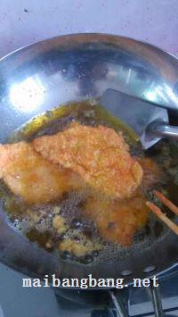 6.锅里放入适量的豆油,油温六成热下放入鸡排,炸至金黄色捞出