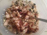 8.将豆们倒入泡好沥干水的糯米中,加入适量盐、生抽、蚝油。